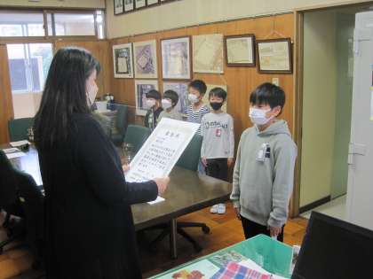 表彰をおこないました 公開日 2022/11/30 更新日 2022/11/30 学校生活の部屋 11月29日(火)の朝、表象を行いました。 夏休みに応募した、「明るい家庭ポスター」、「防火ポスター」の表彰と、 小牧市社会福祉大会の児童・生徒顕彰の表彰、 地元のチームで参加した市民スポーツ大会(サッカー)の表彰です。