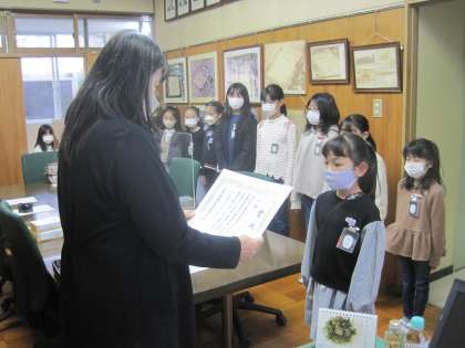 県下児童生徒席上揮毫大会表彰 公開日 2022/12/16 更新日 2022/12/16 学校生活の部屋 13日(火)に「県下児童生徒席上揮毫大会」の表彰を行いました。 今年度も多くの児童が書道の技を競い、日頃の練習の成果を発揮しました。