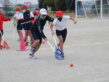 体育の授業 公開日 2023/02/08 更新日 2023/02/08 6年生の部屋 少し前からラクロスをやっています。ラクロスはクロスというスティックを使ってボールをゴールに入れるスポーツです。パスをしたり、ボールを取り合ったり、初めてのスポーツをとても楽しんでいます!