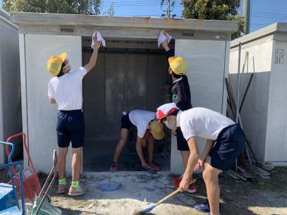 奉仕作業〜外器具庫編〜 公開日 2023/03/01 更新日 2023/03/01 6年生の部屋 天気に恵まれ、外の器具庫も掃除できました。砂まみれになりながら、こちらもぴかぴかにしました。最後はきれいに整頓して器具をしまい、作業完了!これからも整理整頓を心がけてみんなが使ってくれるといいですね。