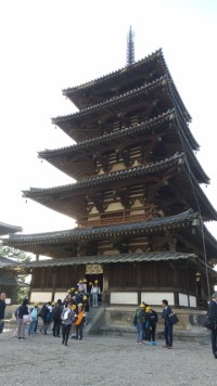 法隆寺を見学中。朝の冴えた空気のせいか、とても荘厳な雰囲気です。
