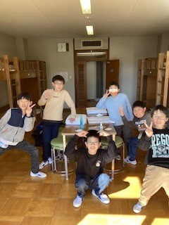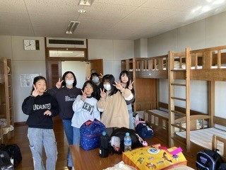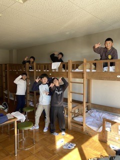 入所式が終わった後、それぞれの部屋に移動です。避難路を確かめてからベッドメイキングです。