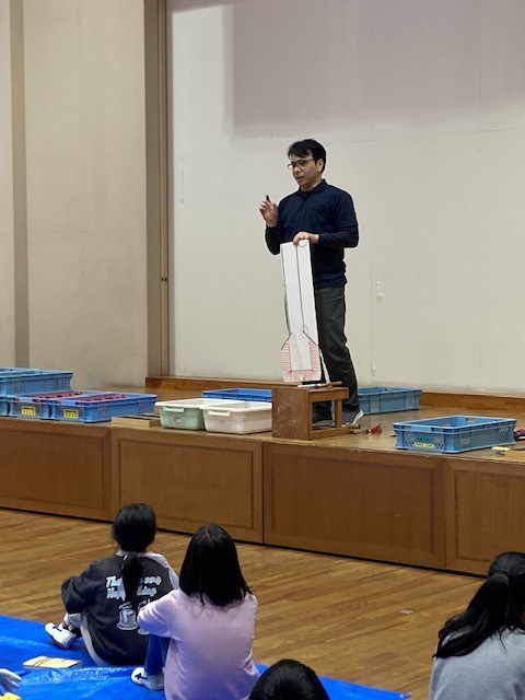 午後の活動が始まりました。竹スプーンを作ります。施設の方の説明を聞いています。