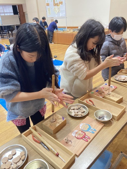 キリやラジオペンチなど使い慣れていない道具を使いながら、少しづつ形になってきました。