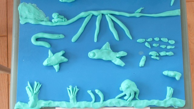 2年生 図工「にぎにぎねん土」の作品です。1年生の頃と比べると、ねん土でいろいろな形を作ることが、とっても上手になりましたね。