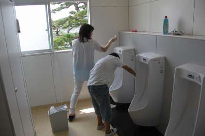 トイレ掃除では、17名(トイレ清掃ボランティア・地域コーディネーター)の方々と子どもが一緒になって掃除をしました。いつも以上にトイレがきれいになりました。