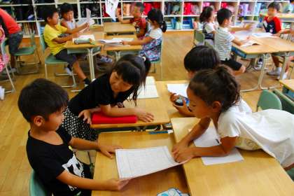 今日は、夏休みに書いてきた絵日記を使って、夏休みの思い出をグループで話し合いました。どれも楽しそうな思い出ばかりでした♪