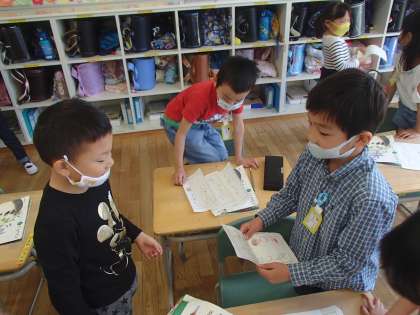 3枚作ったので、お友達と自己紹介をしあって、交換をしました。