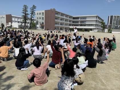 5時間目に避難訓練を行いました。地震が起きて、火災が発生した想定で行いました。放送がかかるとすぐに、机の下に入りました。階段は、6年生や2年生と同時の避難でしたが、慌てることなく移動できました。