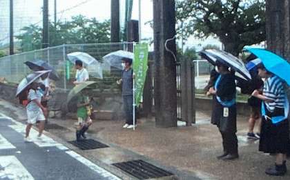 あいにくの天候ではありましたが、PTAの方々にご協力をいただき、今年も笑顔でさきがけあいさつ運動を行いました。雨の中、ご協力ありがとうございました。