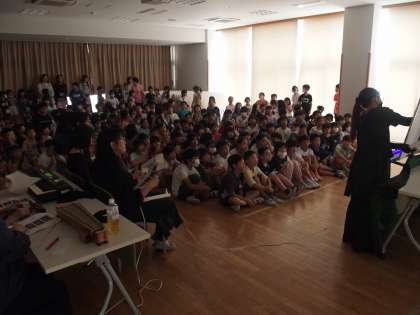 ブラックライトにアラジンたちが幻想的に浮き上がります。大盛況でたくさんの児童が集まりました。