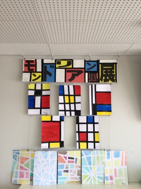 縦横に数本マスキングテープを自由に貼り、できた空白にパステルで色をつけました。