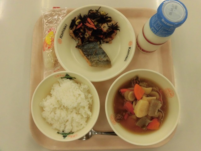 今日は、お月見献立でした。中秋の名月である今日は、芋型の月見団子や、里芋がごろごろ入ったいも煮が出ました。