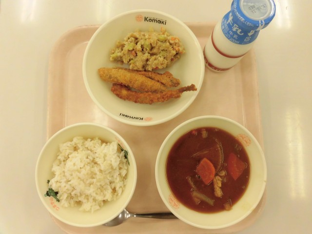 今日はそのししゃもフライに、レモンソースがかかっていました。レモンに含まれるビタミンCは、カルシウムの吸収を促進する働きがあります。