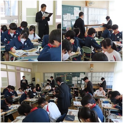 文化祭を直前に控えていますが、先週・今週と、講師を招いての授業研修に取り組んでいます。今日は、国語科と社会科の先生の授業を見ていただきました。また、今日は蒲郡の中学校の先生も授業を見に来てくださいました。授業後は授業者と講師で振り返りを行い、これからの授業づくりに生かしています。