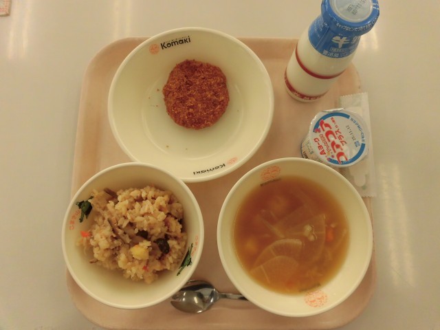 炊き込みご飯には、しいたけ、しめじなどのキノコ類や、秋の味覚の栗などが入っていました。具だくさんの炊き込みご飯は食べ応えがあってとてもおいしかったですね。