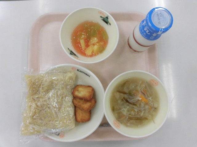 フルーツゼリーあえは、アセロラジュレ、マスカットゼリー、パイナップルでした。ビタミンCをしっかりとって、免疫をつけましょう。