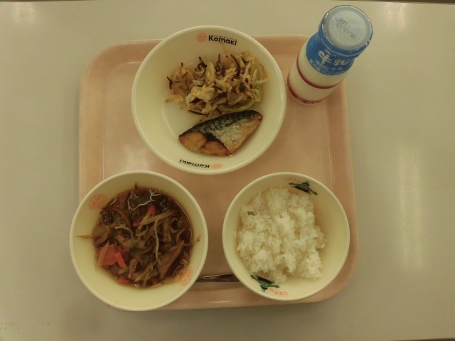 今日は、さばのカレー風味でした。さばの切り身に、カレー粉をふるって焼いたもので、今が旬のさばには脂もしっかりのっていましたね。
