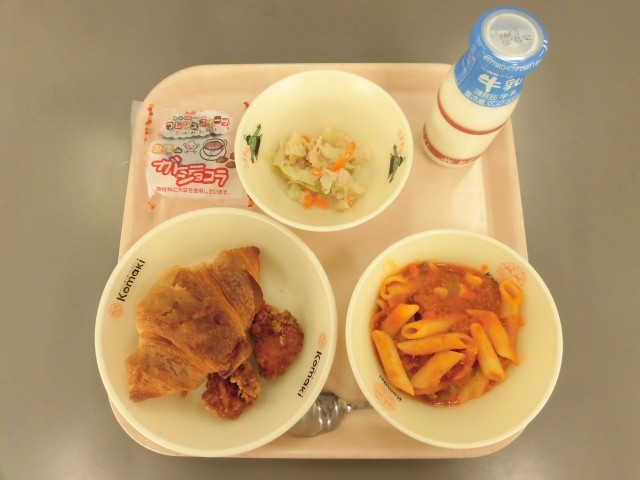 クリスマスといえばケーキですね。今年はガトーショコラが提供されました。主菜には、マカロニイタリアンが提供され、食べ応えがあり華やかな献立でした。