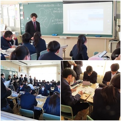 市内の社会科の先生とともに、2年生の授業研究会が行われました。授業後には協議会も行われました。