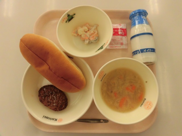 今日はサンドイッチロールパンだったので、ポテトサラダやハンバーグをはさんで食べる生徒たちの姿がみられました。