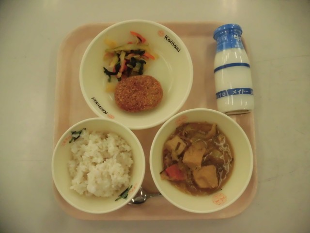 全国学校給食週間2日目の今日は、小牧市発祥といわれる名古屋コーチンを使ったひきずりが提供されました。