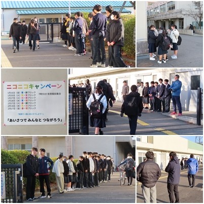 4月の新入生歓迎会でグループが決まった縦割り学年。そのブロックを活用してのあいさつ運動が3学期行われています。先生も加わってのあいさつ運動。活気あふれるものです。