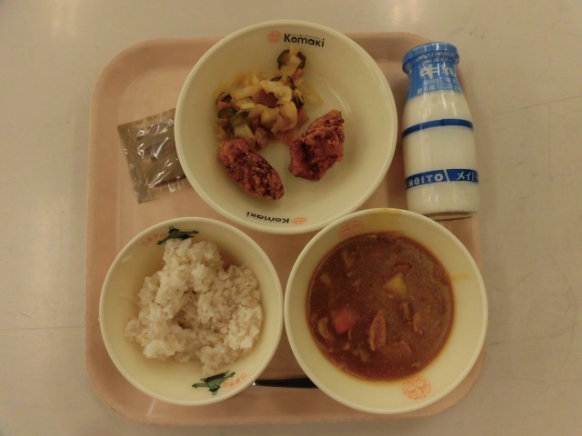 給食最終日は、みんな大好きカレーライスと、から揚げが提供されました。