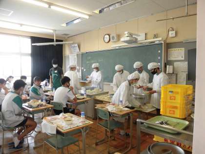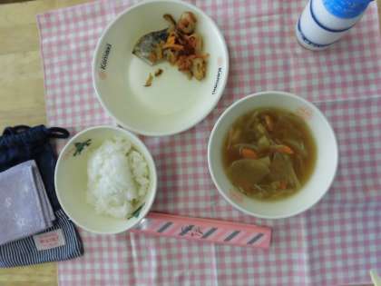 通常給食が始まり、しばらくたちましたがどのクラスでもスムーズに準備が進められていました。