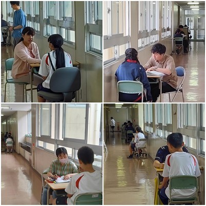 今年度、2回目となる教育相談が行われています。1対1で担任の先生と話ができる時間です。テスト週間中のため、教室では静かな雰囲気でテスト勉強が行われています。
