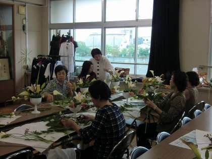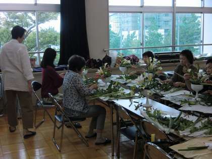 心配された台風の影響もなく、本日もフラワーアレンジメント教室が開講されました。皆さん熱心に作品作りに取り組んでいます。