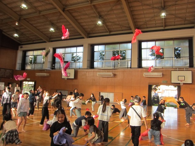 今回はしゅりけんダーで使用する手裏剣をおりがみで作りました。終了後は、みんなで分けてプレゼントしました。