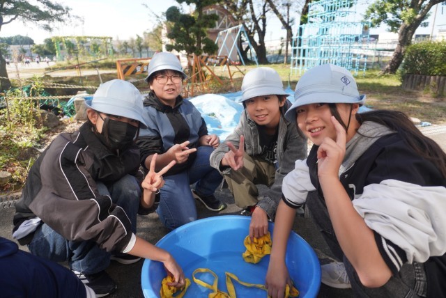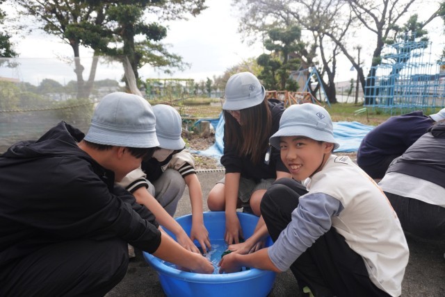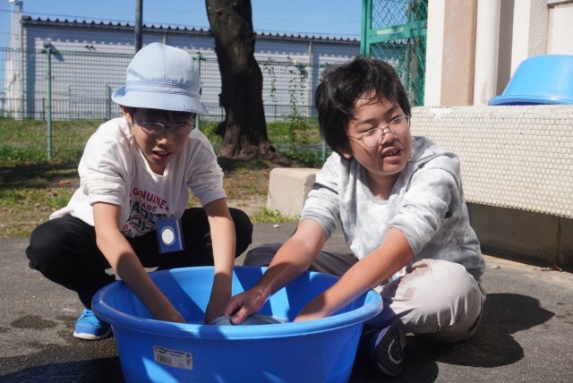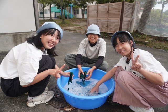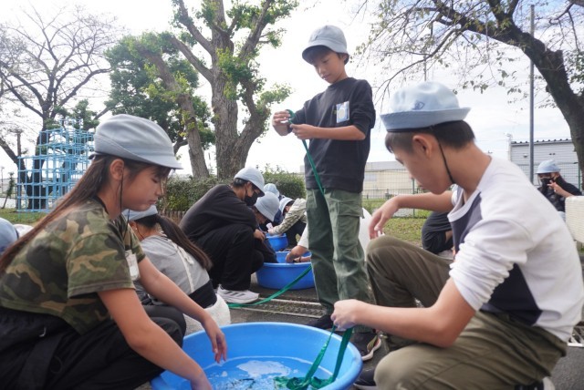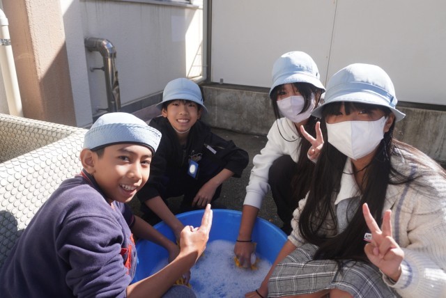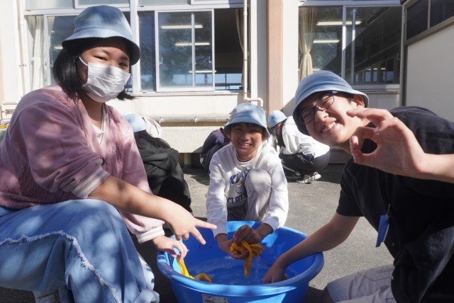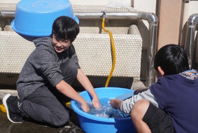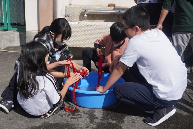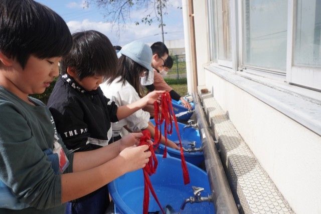 運動会で使用した鉢巻の手洗い洗濯を行いました。
