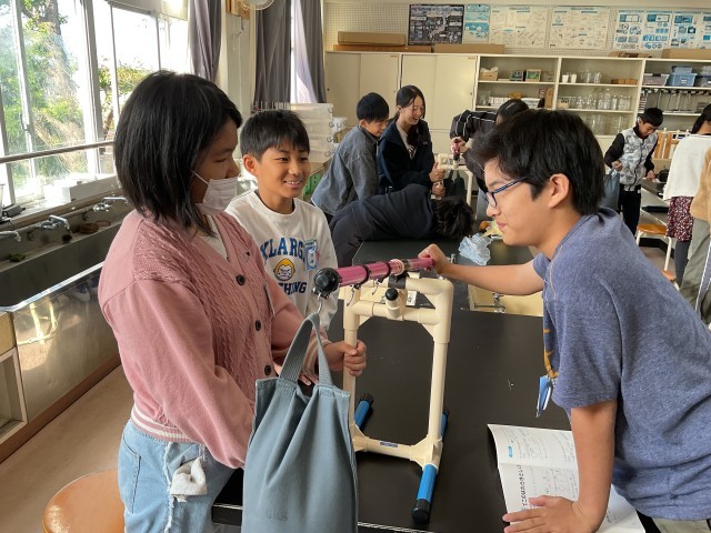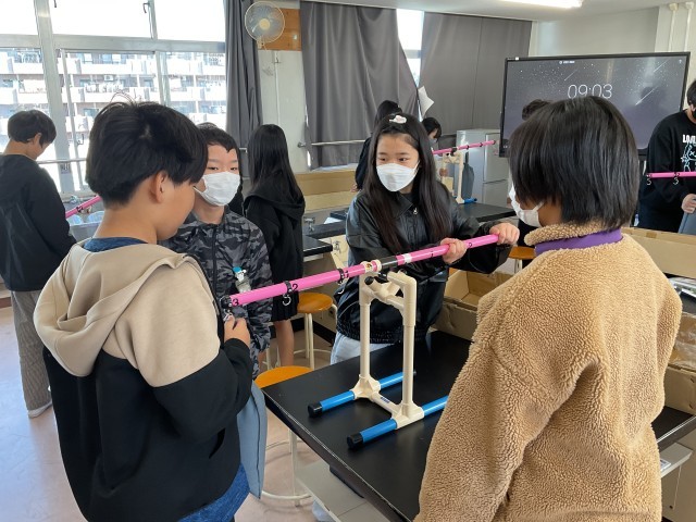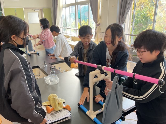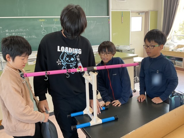 同じ重さのはずなのに、持つ場所やかける場所によって、力の大きさが変わることを感じたときの表情がとても素敵でした。