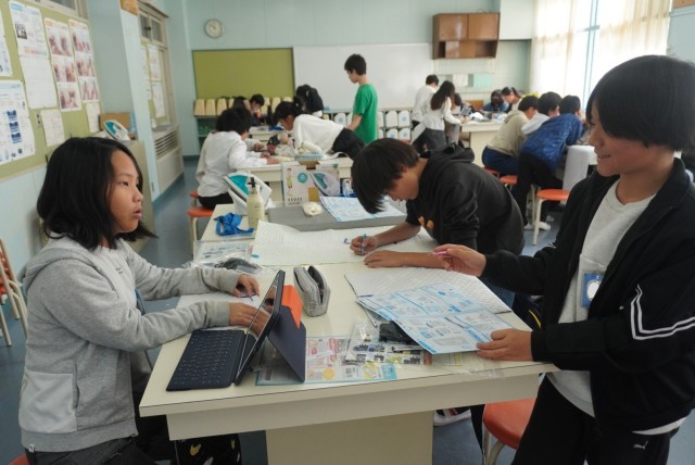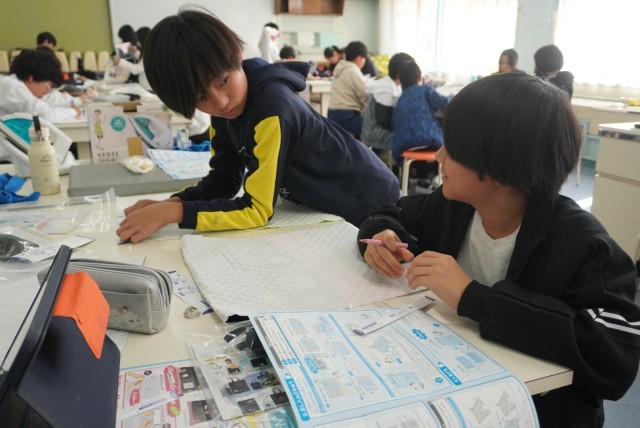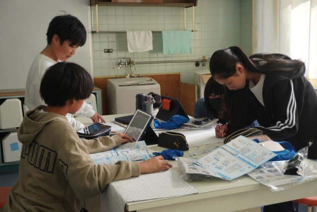 家庭科「思いを形にして生活を豊かに」の単元で、ナップザック作りが始まりました。
