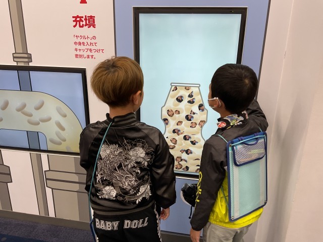 ヤクルト工場で楽しそうに過ごす子どもたちです。
