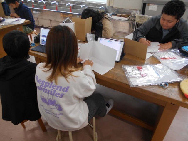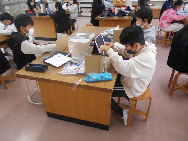 鏡の性質を利用しながら、作品作りに取り組みました。