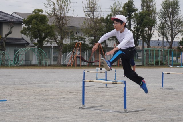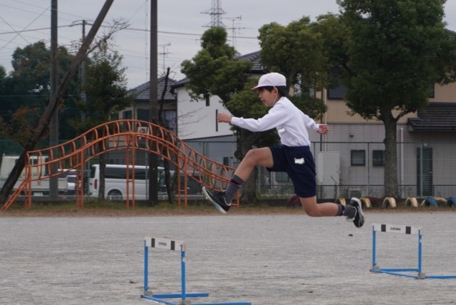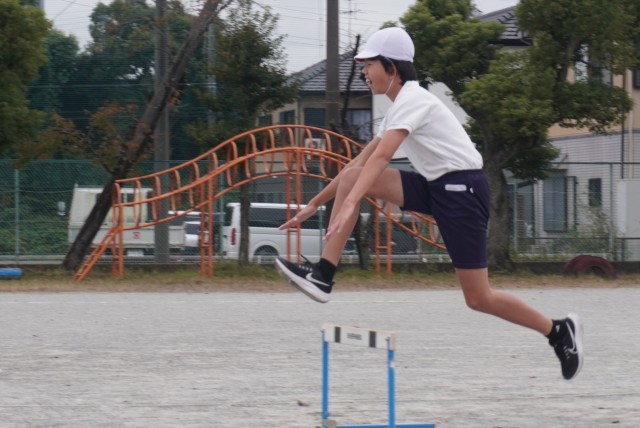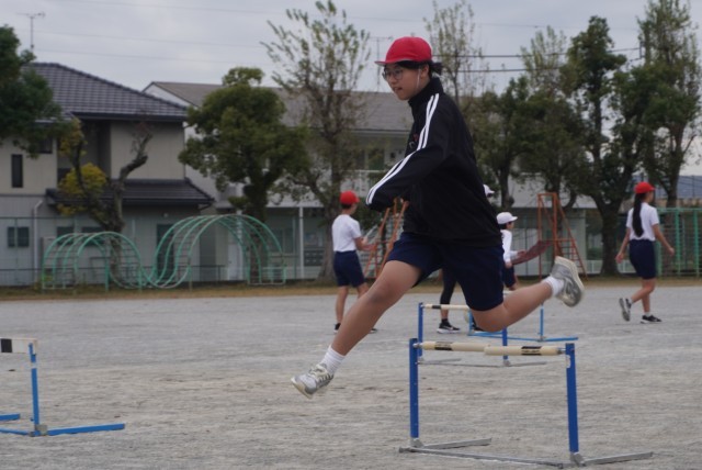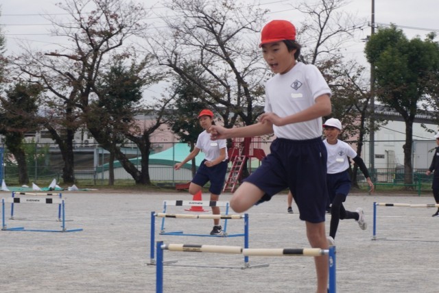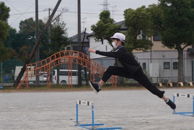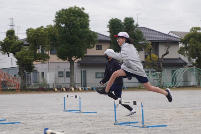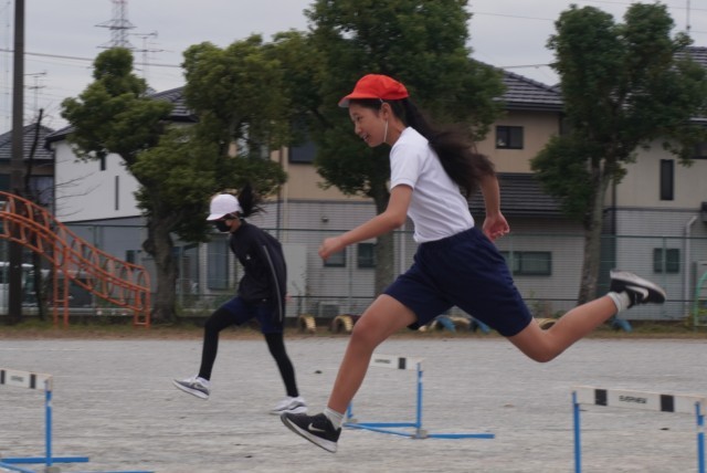 体育「ハードル走」の授業の様子です。
