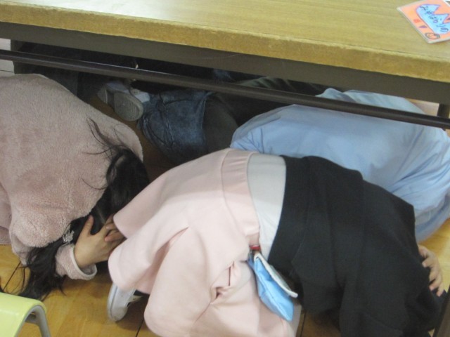おもな内容は ① 防災ぬりえ (表はなまずに色を塗ってラミネート加工します。裏に防災について詳しい注意がありました) ② シェイクアウト 机の下に丸まって頭をおさえて守る ③ おはしものお話 ④ 防災紙しばい「台風がくるぞ!」紙芝居を読んだ後・・・ひなんをする場所は?(近くの公民館へ)どんなはきものをはいたほうがよい?(運動ぐつ)