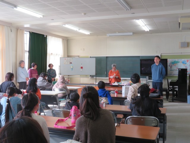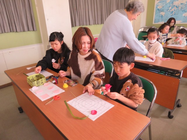 PTA親子講座「和紙で咲かせる椿のお正月飾り」