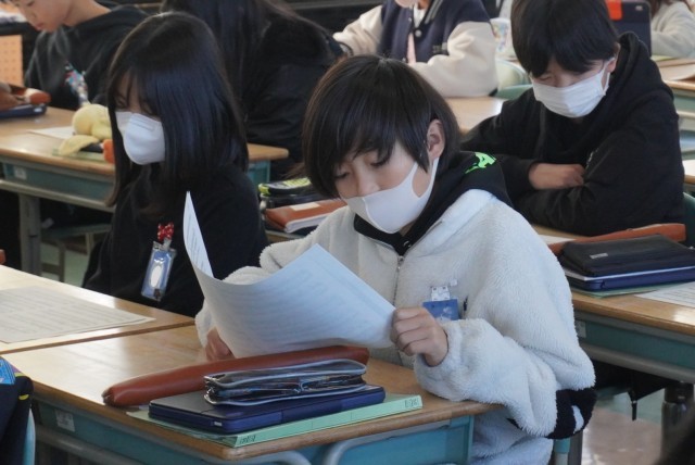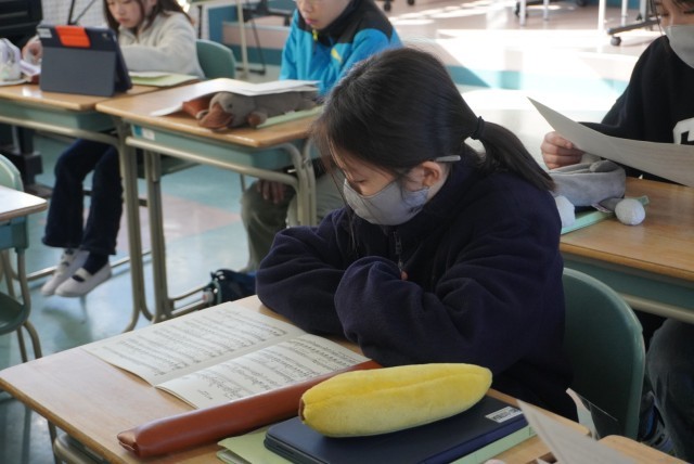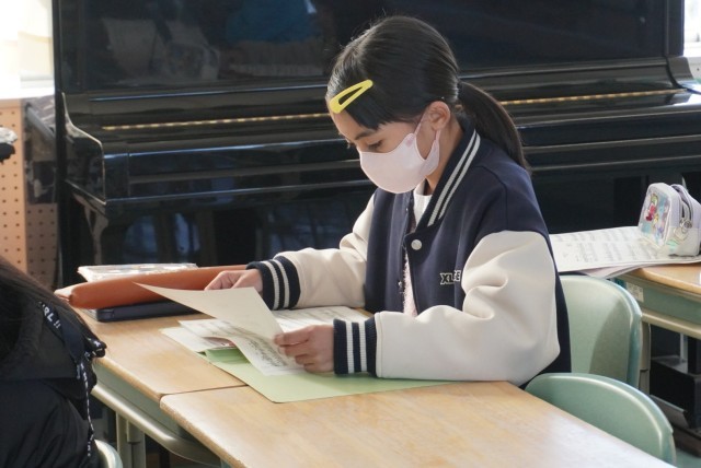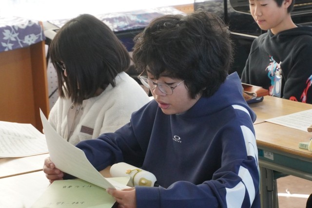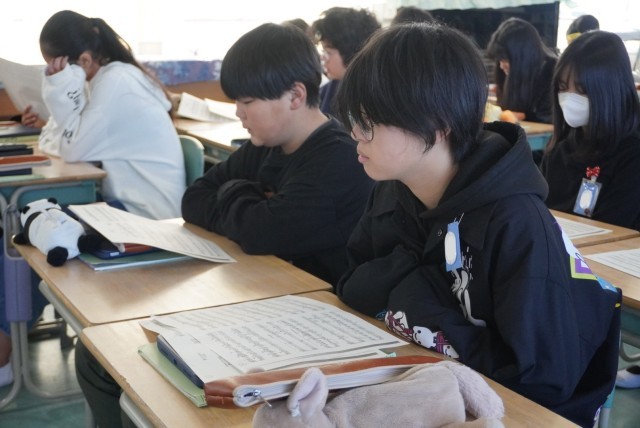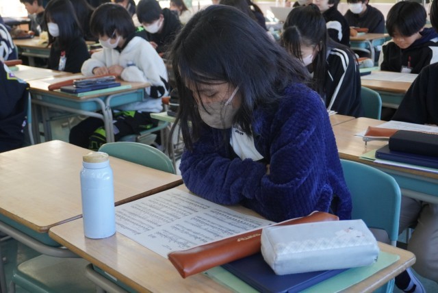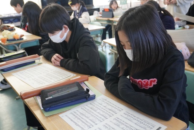 音楽の授業で、卒業式に歌う曲を聴きました。