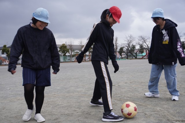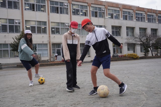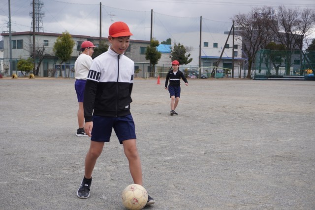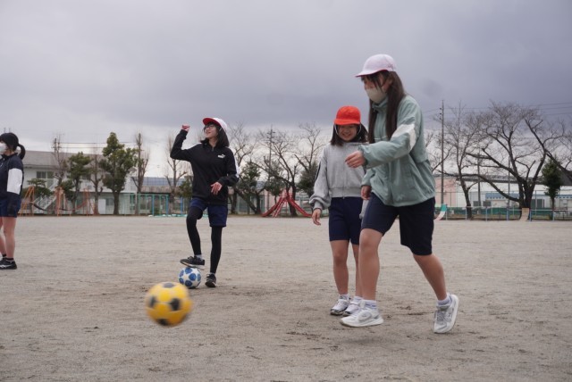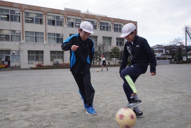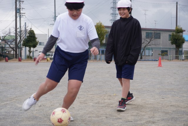 体育で持久走とサッカーを行いました。