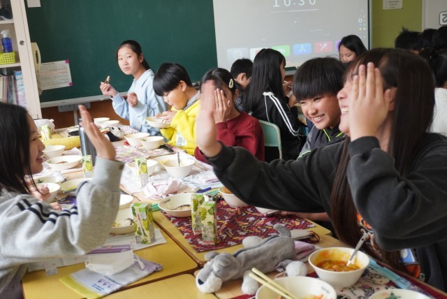 おかわりじゃんけんで盛り上がったり、他クラスの仲間の誕生日を祝ったりなど、温かい雰囲気の中で過ごしています。