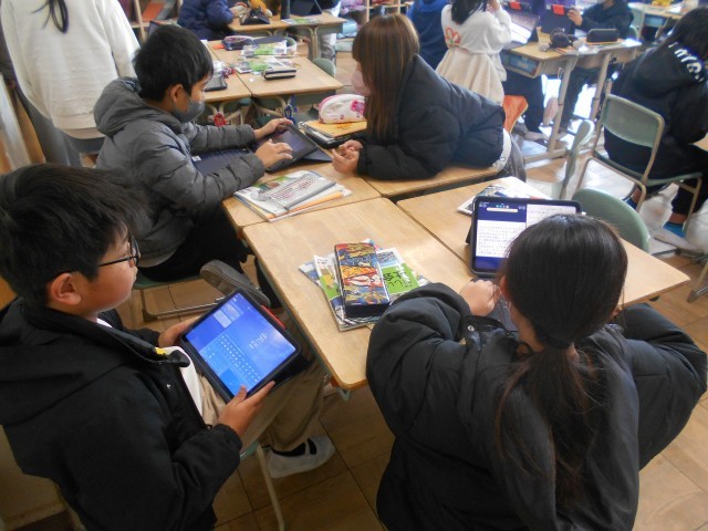 小牧原小学校に関するニュースを作る班や小牧市の天気予報でニュースを作る班がありました。