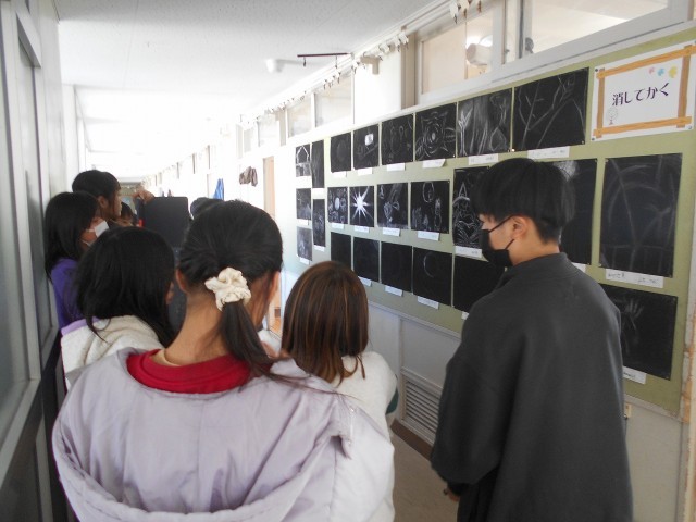 今日の図工では、消してかくという単元の鑑賞を行いました。