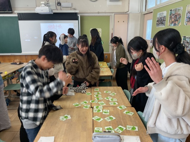 明日のしつけカルタ大会に向けて、グループのみんなと練習しました。体を寄せ合い、ハキハキと読み札を読み、明るい雰囲気でカルタをすることができました。