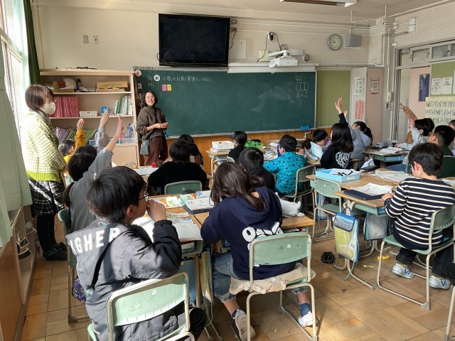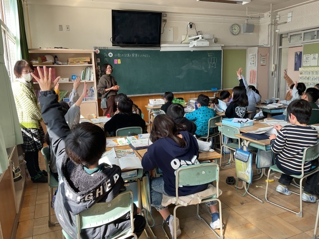 小数の仕組みを学んだ子どもたちは、小数の足し算・引き算に挑戦していました。