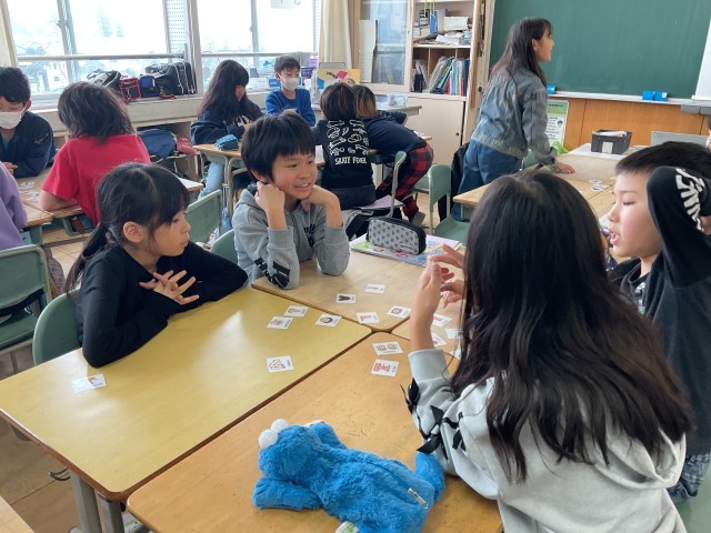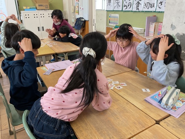 ゲームをしながら英語を学ぶ子どもたちです。