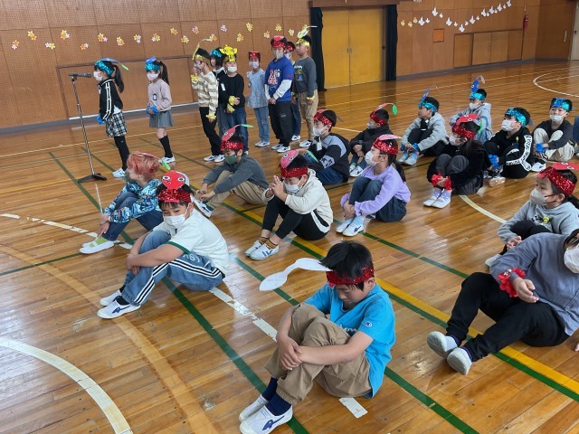 送る会の練習の様子です。代表の児童を中心に、一生懸命頑張っています。