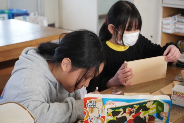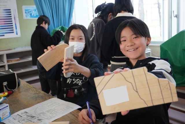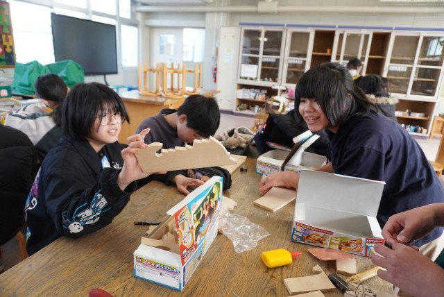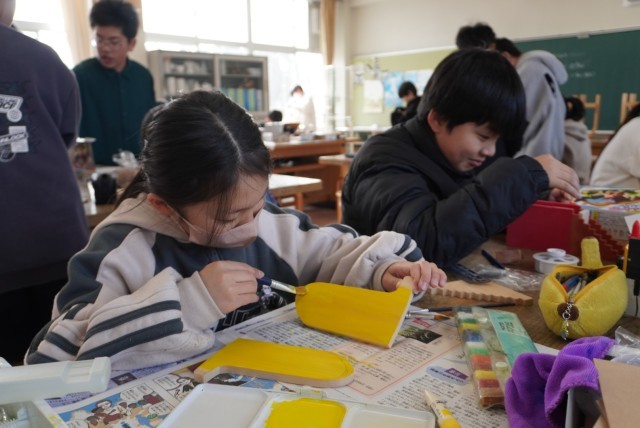 図工で最後の作品を作っています。